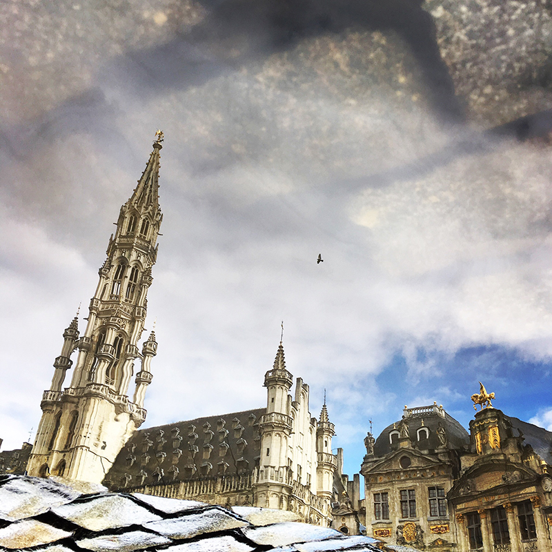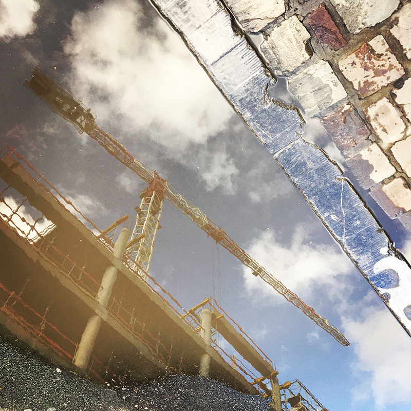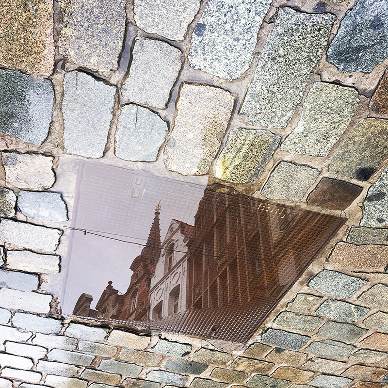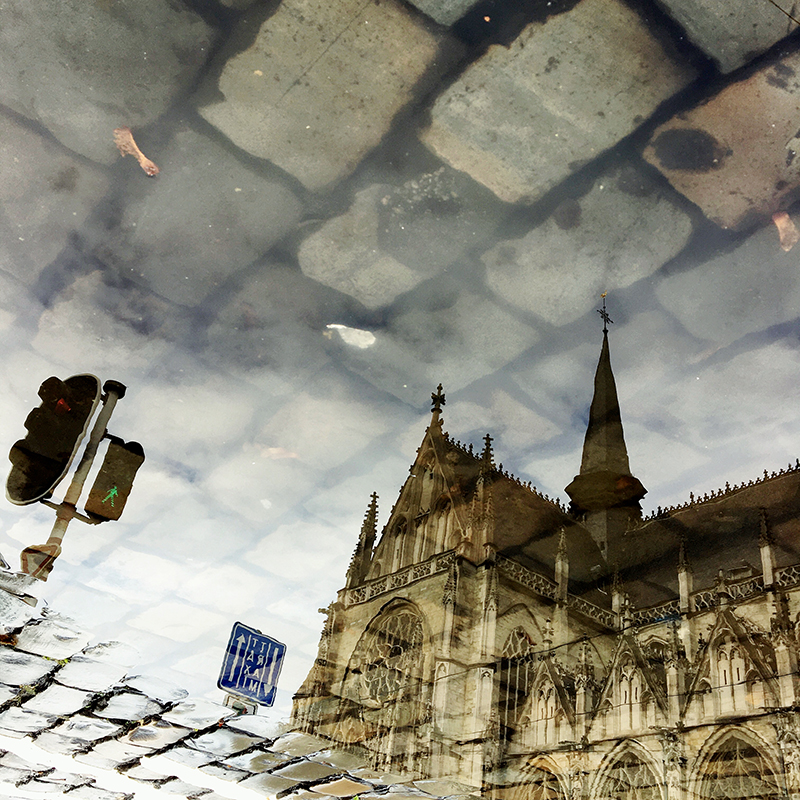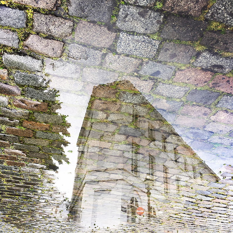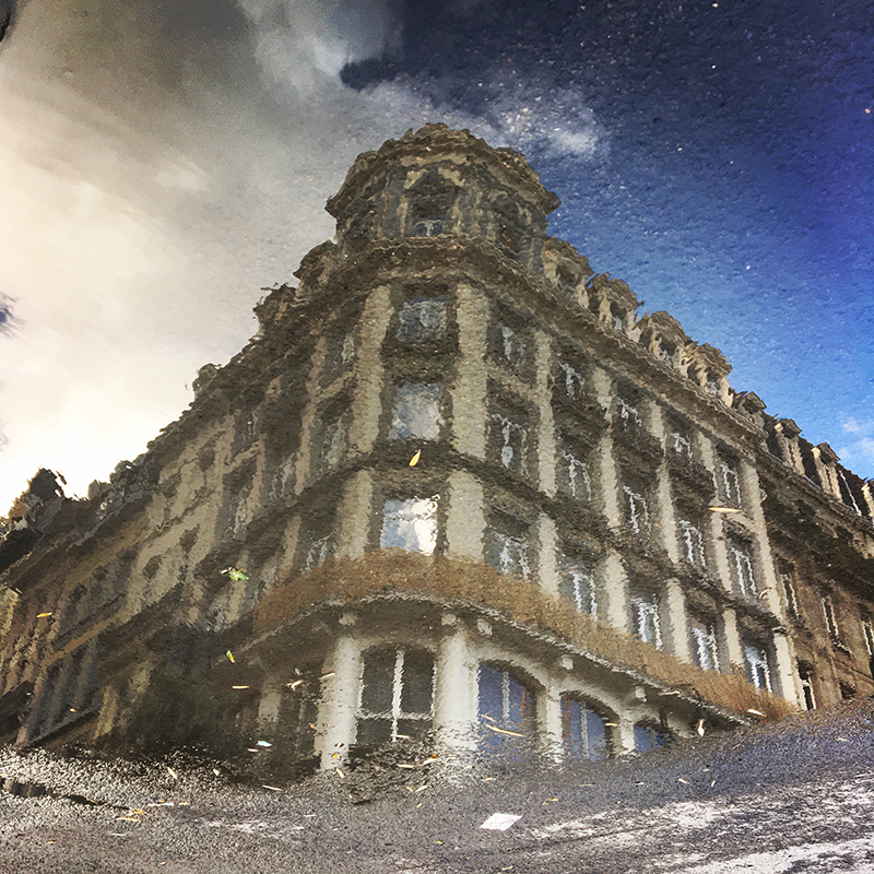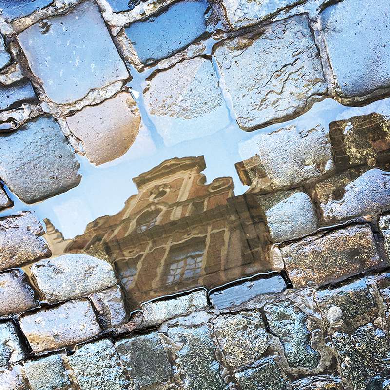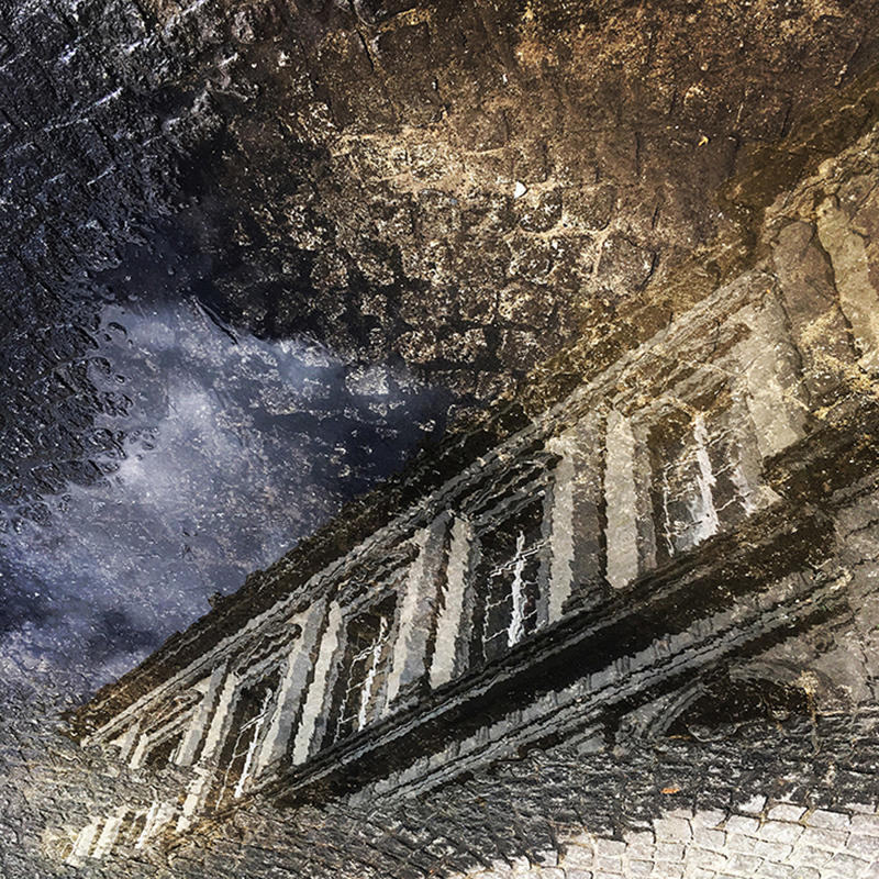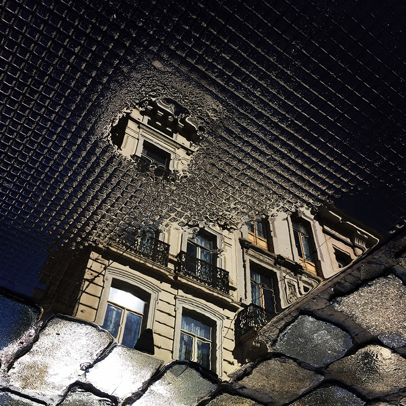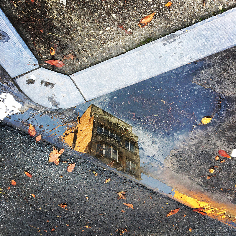 Je ne sais pas vraiment ce qui me plaît le plus dans les flaques. Est-ce leur côté éphémère ? Cette magnifique façon d’apparaître et de disparaître petit à petit. Leurs reflets qui peuvent être, selon le sens dans lequel on les regarde, complètement différents. Ou est-ce la superposition de deux univers qu’elles me laissent voir, l’espace d’un instant ? J’aime attendre la fin de l’averse pour partir découvrir cet autre monde qui me surprend toujours autant, quelque soit le jour ou la saison. Après la pluie, deux mondes vivent en suspension et on ne sait plus où mettre les pieds.